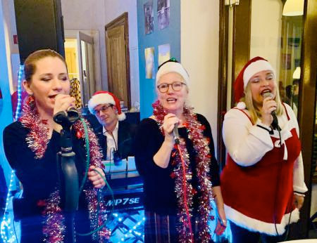Die traditionelle Weihnachts-Mitsing-Party mit den RudelDudettes Inga Winter, Iris Panknin und Marcia Golgowsky, begleitet von RudelDude Burkhardt Heßler am Piano. Texte werden gebeamt.