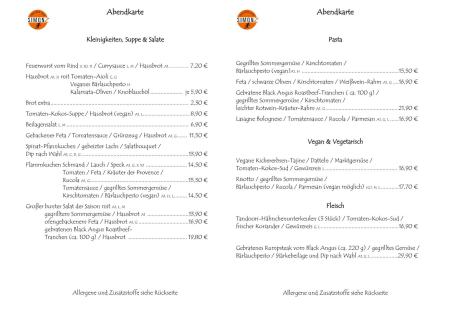 Abends gilt unsere Speisekarte von 18:00 bis 21:00: